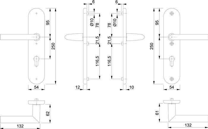 für Abschlusstüren · geprüft nach DIN 18257 · Unterkonstruktion: außen Stahl, innen Aluminium, Stütznocken · mit Rückholfeder-Paket · Wechselgarnituren mit gekröpftem Knopf · feststehend (ummontierbar) · mit Schnellstift-Verbindung · hochfeste, verdeckte Verschraubung · PZ · einschließlich Befestigungsmaterial M 6 · DIN links / rechts · Widerstandsklasse ES 1