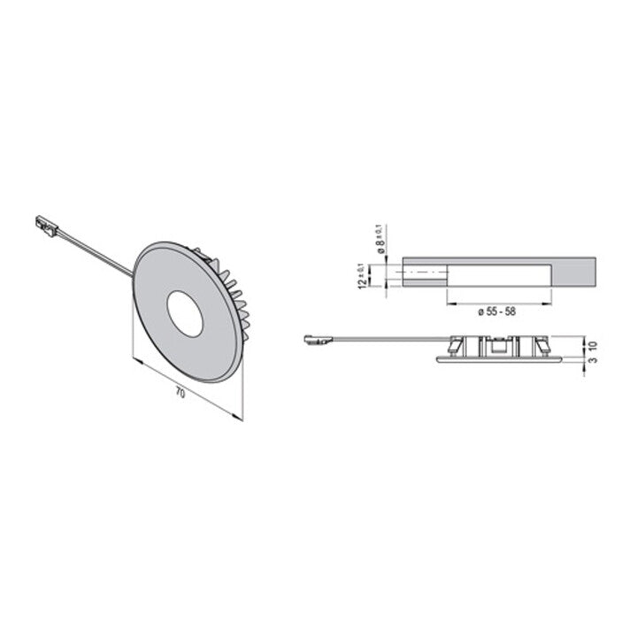 Einbauleuchte mit hochwertiger Edelstahloberfläche · 2 mm Randhöhe · Einbaubohrung 55-58 mm · dimmbar mit stufenlos regelbarer Farbtemperatur durch Emotion Technologie · Lebensdauer 30000 h · Schutzart IP20 · Abstrahlwinkel 35° · diese Leuchte enthält eingebaute LED-Leuchtmittel · Energieeffizienzklasse F · Ohne Emotion Steuerung leuchtet die LED warmweiß. Mit der Emotion Adapterleitung 3000 550 088 leuchtet sie kaltweiß (nicht im Lieferumfang enthalten).