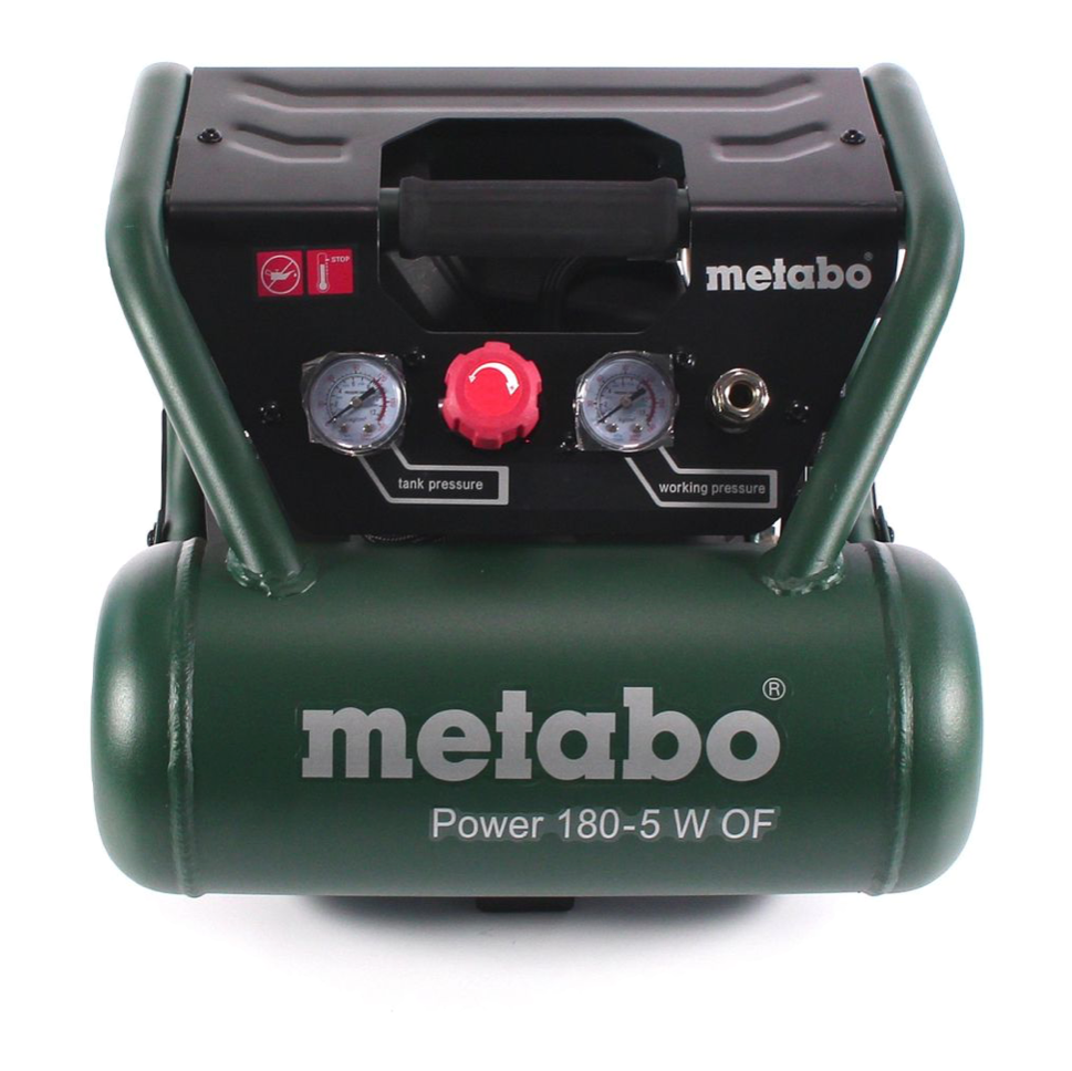 Metabo Power 180-5 W OF Kompressor 8 bar 1,1 kW ( 601531000 ) 5 l Kesselgröße ölfrei + 4 tlg. Zubehör Set