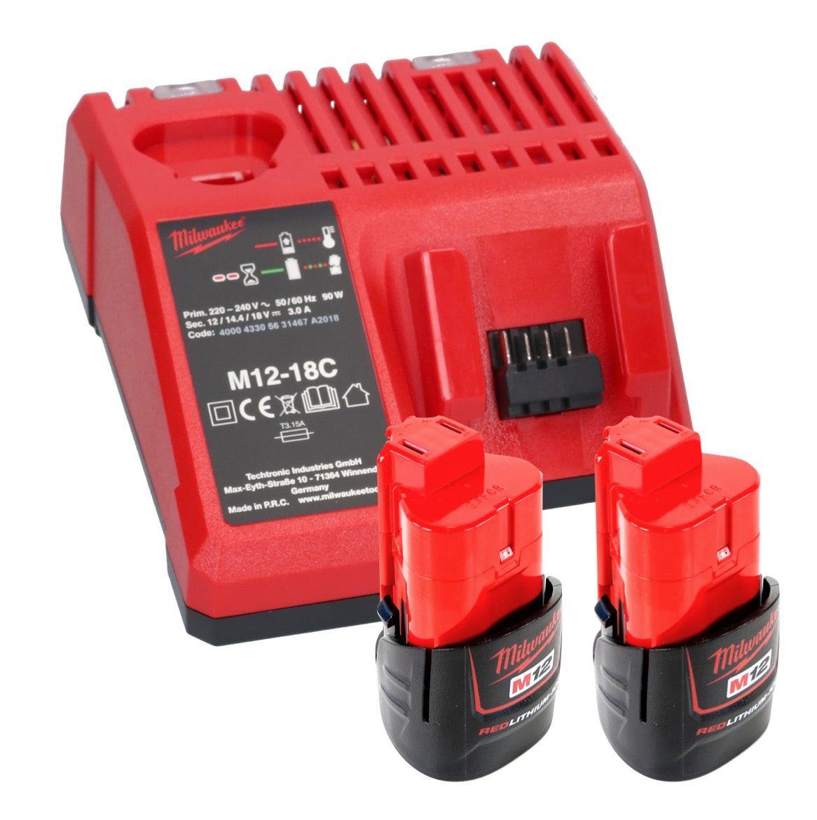- 2x Milwaukee M12-B2 12 V 2,0 Ah Akku
