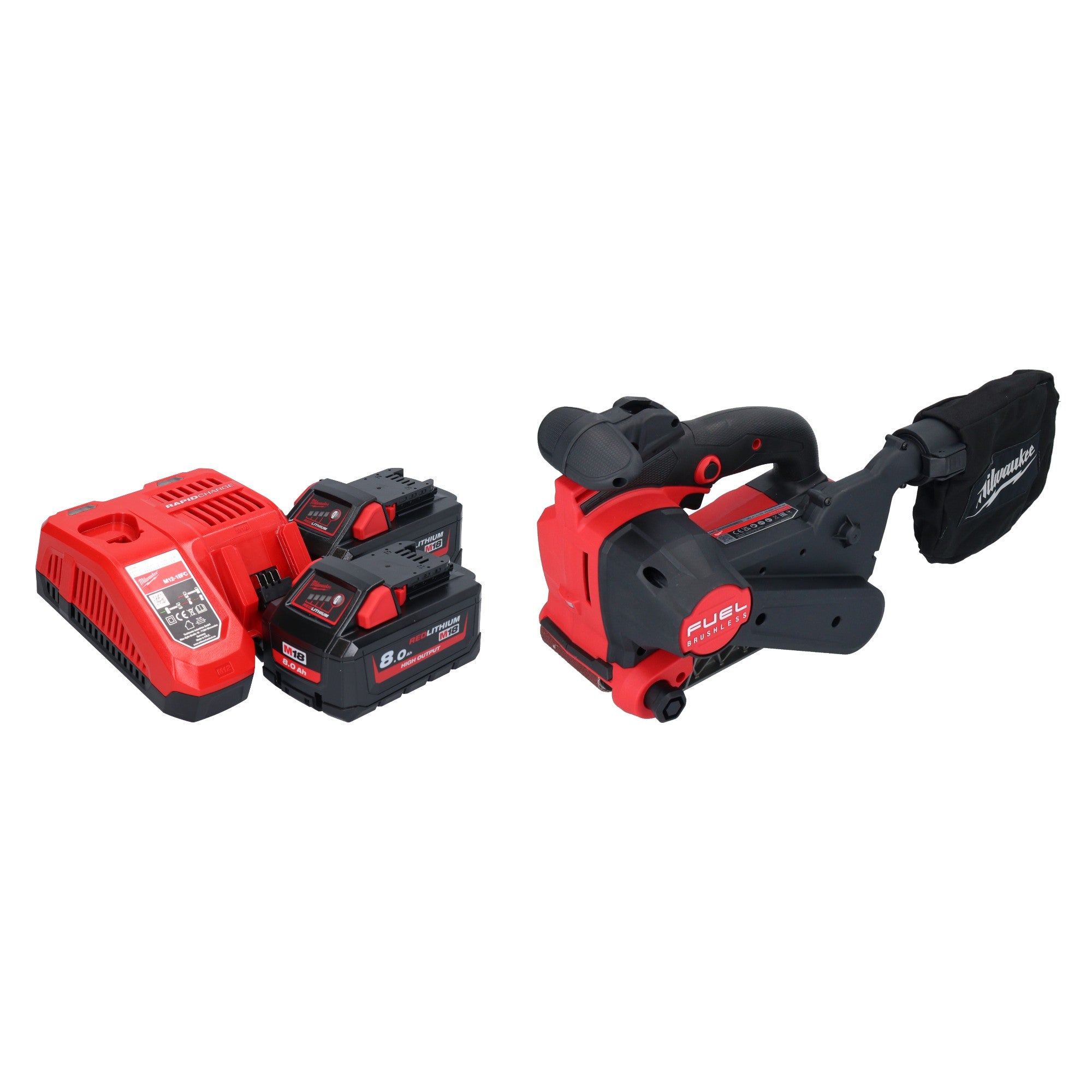 Milwaukee M18 FBTS75-802 Akku Bandschleifer 18 V 75 x 457 mm Brushless + 2x Akku 8,0 Ah + Ladegerät