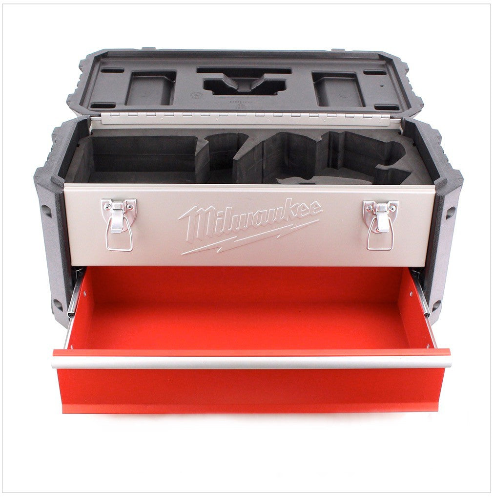 Milwaukee MBOX 100 M18 CPD 421 C 18 V Akku Schlagbohrschrauber mit 2xLi-Ion Akku, Lader, Koffer, 100 tlg. Bit-Set