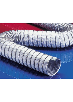 Anwendungen: flexibler Schlauch für heiße und kalte Gase, Abgasabsaugung, Absaugung von Motorabgasen: Abgasschlauchaufroller, Saugschlitzkanäle, Überflur-/ Unterflurabsauganlagen, Motorenprüfstände, Abgasmessung, Hochtemperaturabsaugung: Öfen, Gießereien, Hochöfen, Schmelzen, Keramikindustrie, Glasindustrie, Stahlwerke, Aluminiumhütten, Faltenbalg, Kompensator Eigenschaften: sehr gut bei Funkenflug und Schweißspritzern, Scheuerschutz durch äußeres Klemmprofil, zugfeste Verklemmung der Wandung im Klemmprofil, sehr gut hitzebeständig, schwerentflammbar nach: DIN 4102-B1, RoHS konform Konstruktion: 1. Klemmprofil-Stützwendel: komplett Edelstahl (INOX), 2. zweilagige Wandung, Wandung: innen und außen mit Edelstahldrähten armiertes und spezialbeschichtetes Glasgewebe Temperaturbereich: -60 °C bis 600 °C, kurzzeitig bis 700 °C Liefervarianten: weitere Ausführungen, Abmessungen und Längen auf Anfrage lieferbar