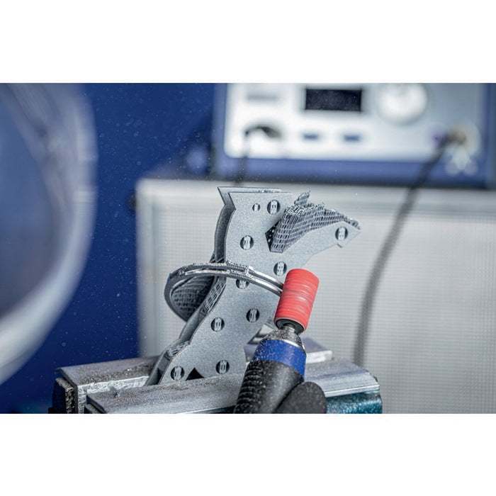 • Vorteile: Herausragende Standzeit durch spezielles Fertigungsverfahren – auch unter härtesten Einsatzbedingungen. Sicherer Sitz der Schleifhülse auf dem Schleifhülsenträger durch Ausdehnen des Trägers im Einsatz. Die Verpackungsgröße ist ideal für den industriellen Bedarf geeignet. Höchste Wirtschaftlichkeit durch besonders hohen Materialabtrag und hohe Aggressivität des Schleifmittels.