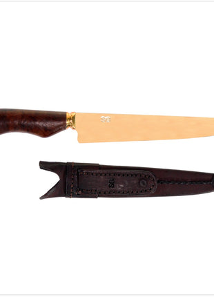 Serra Grande "Dourada Laminada" traditionelles brasilianisches Küchenmesser Kochmesser handgeschmiedet in Gold 20,3 cm Klinge + echt Leder Messerscheide